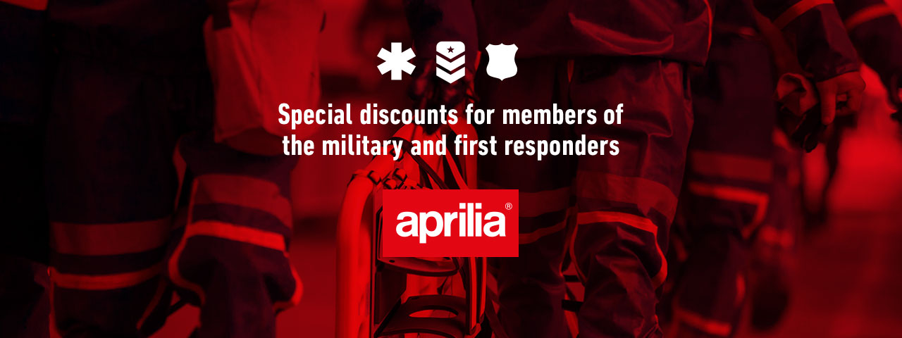 Military & First Responders who purchase any 2026 & prior model year Aprilia vehicle are eligible to receive an incentive of up to $500, applied to the MSRP of the new vehicle. The incentive is based on purchased model cc range as follows: $500 for all Aprilia motorcycles (excluding track only vehicles).
